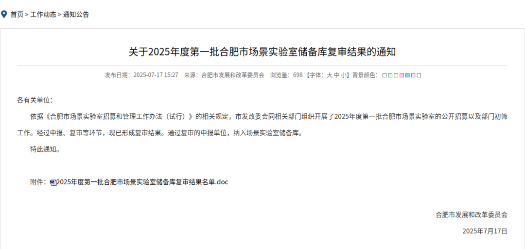 近日,由安徽国控集团所属省科创公司牵头,联合所属国控投资公司、安徽创新馆服务管理中心共同发起设立的安徽省属企业新质生产力培育场景实验室,顺利通过合肥市发改委组织的2025年度首批合肥市场景实验室储备库复审。