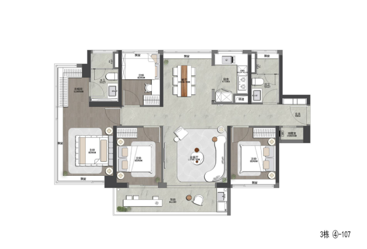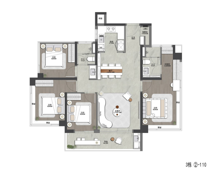 110平是5栋102平的复制版,同一梯腿高低楼层面积有一些差异,但格局总体是不变的。