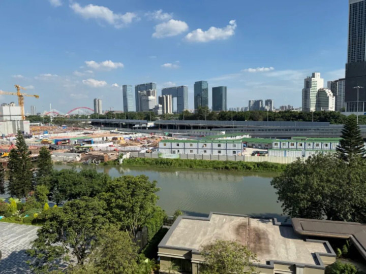南侧的几个户型,前面看中交,远处江边是高大的广州之窗,江景被遮挡的很厉害。